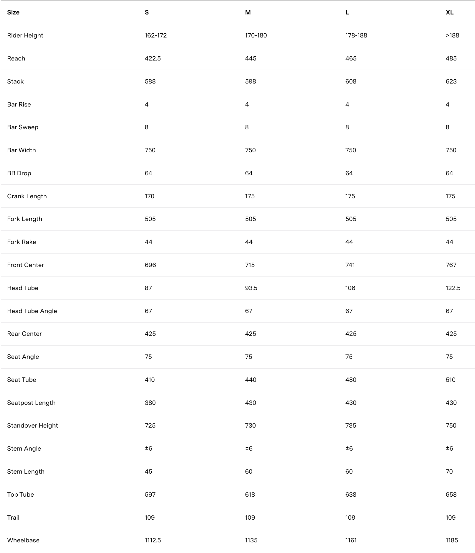 Un ángulo de dirección de 67˚, un frontal adelantado de la bicicleta y un ángulo de sillín de 75˚ para atacar terrenos empinados y sueltos con una perfecta distribución del peso.