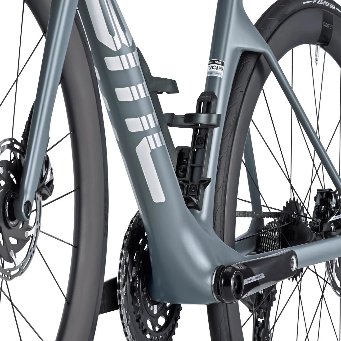 La nueva Teammachine R elimina cualquier concesión. Desarrollada en colaboración con Red Bull Advanced Technologies, la Teammachine R redefine lo que una bicicleta de competición es capaz de hacer. Hace todo lo que le pides cuando más lo necesitas. Monta transmisión SRAM Force eTap AXS con potenciómetro, un juego de ruedas CRD-501 SL, así como el cockpit ICS Carbon Aero de BMC.