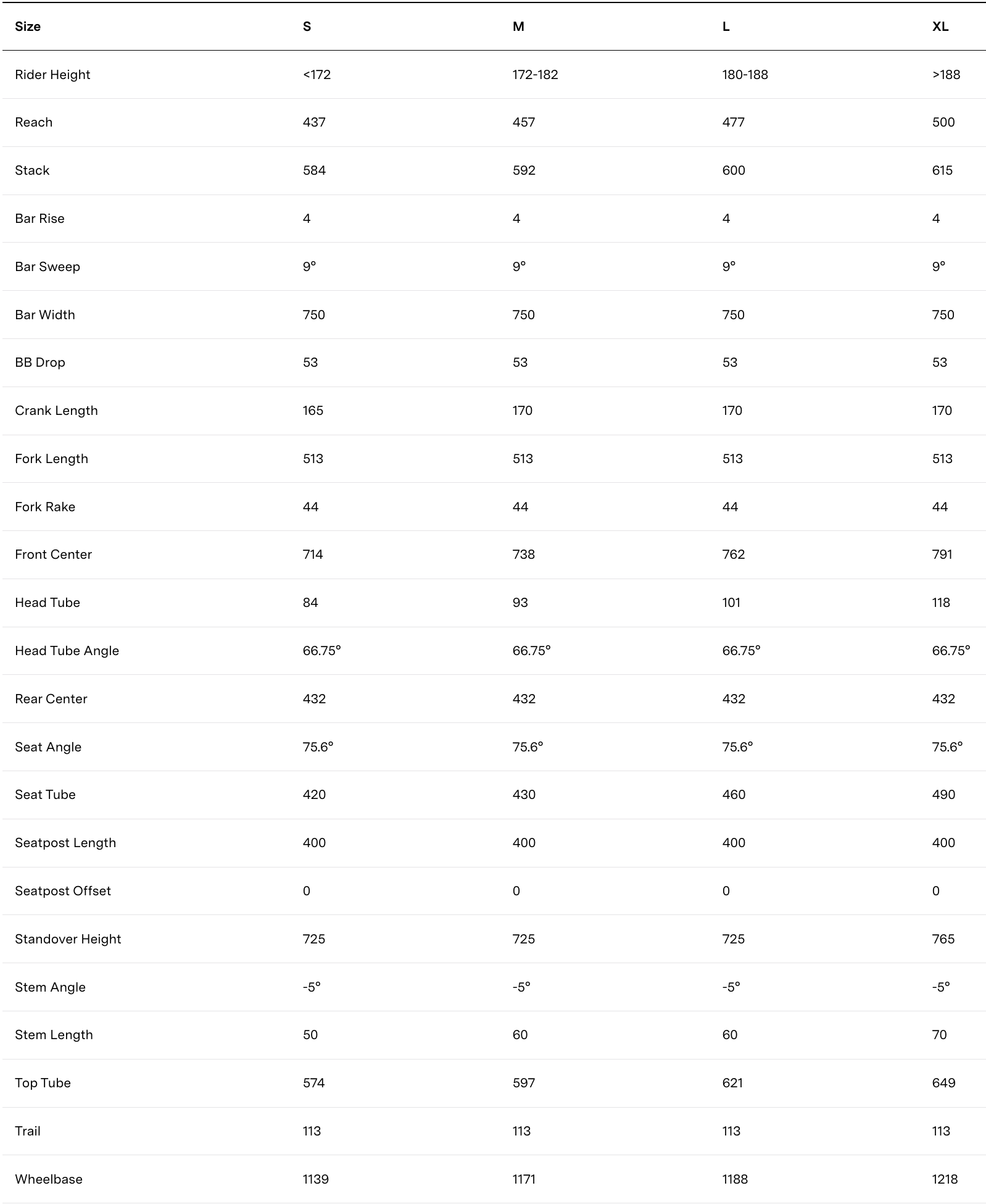 La geometría BWC Race está adaptada a un estilo de competición rápido y progresivo, diseñado para atacar los recorridos más empinados y sueltos con el ángulo de dirección mejorado de 66,5˚ y una parte delantera larga.