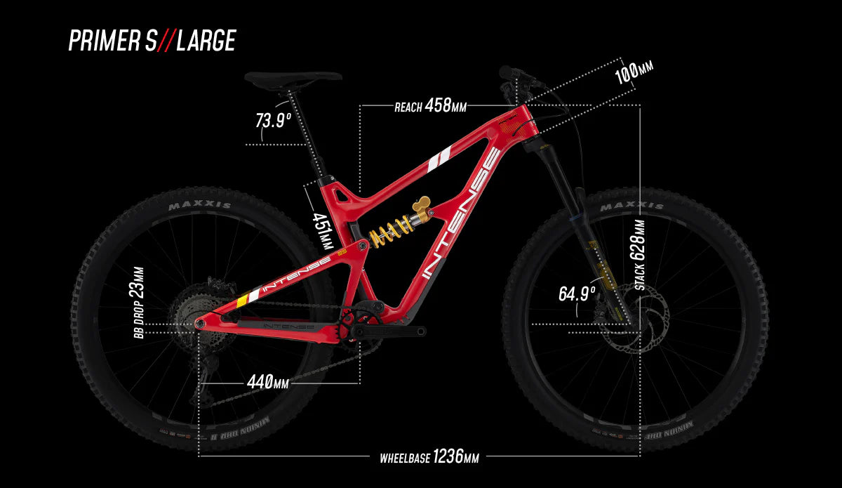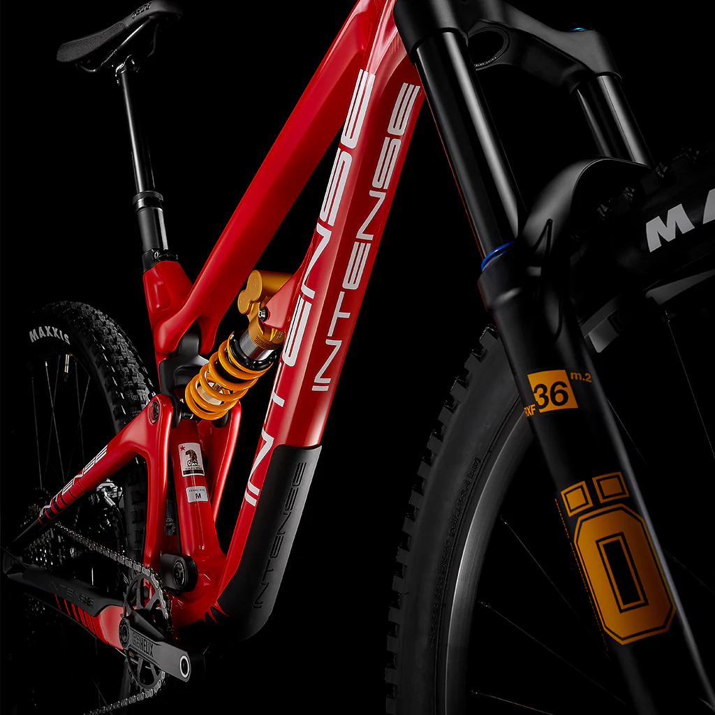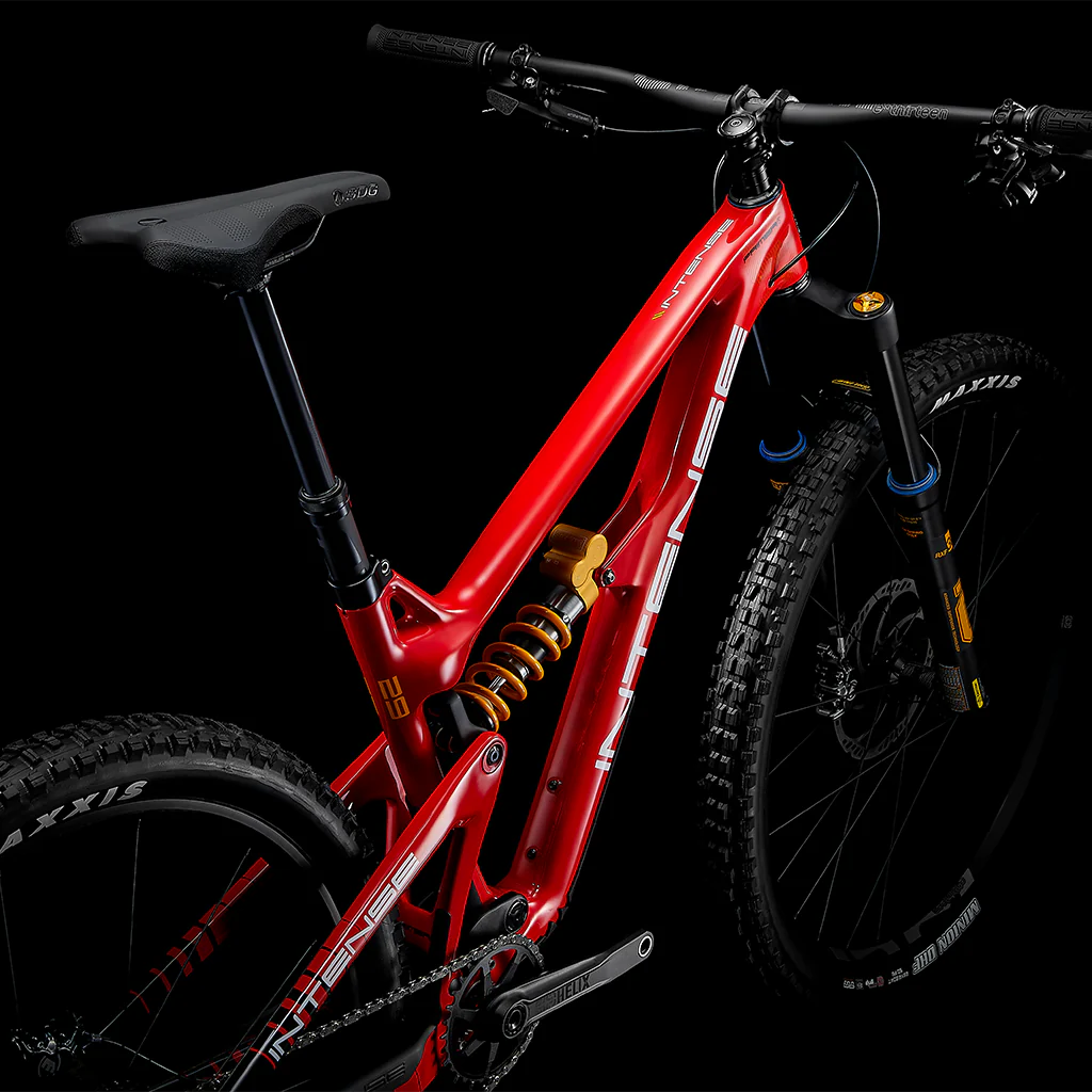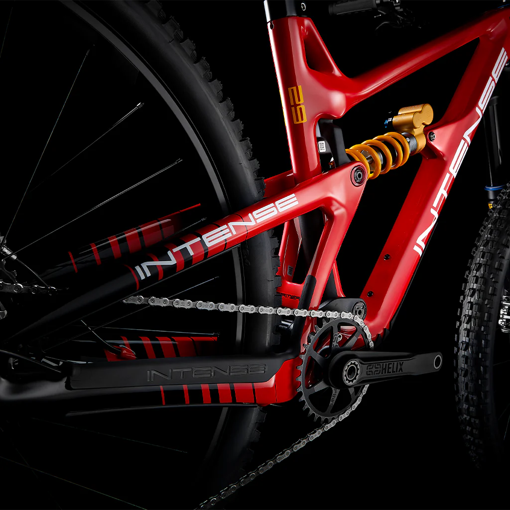 Hablamos mucho sobre la suspensión JS aquí en INTENSE. JS significa Jeff Steber (nuestro fundador y director ejecutivo); simplemente es un sofisticado sistema de suspensión que utiliza dos enlaces contrarrotativos para conectar los triángulos delantero y trasero de la bicicleta. Los enlaces están ubicados de manera precisa para separar las fuerzas de pedaleo y frenado del rendimiento de la suspensión. Cada modelo en nuestra gama tiene su propia sintonización personal y específica de JS.
