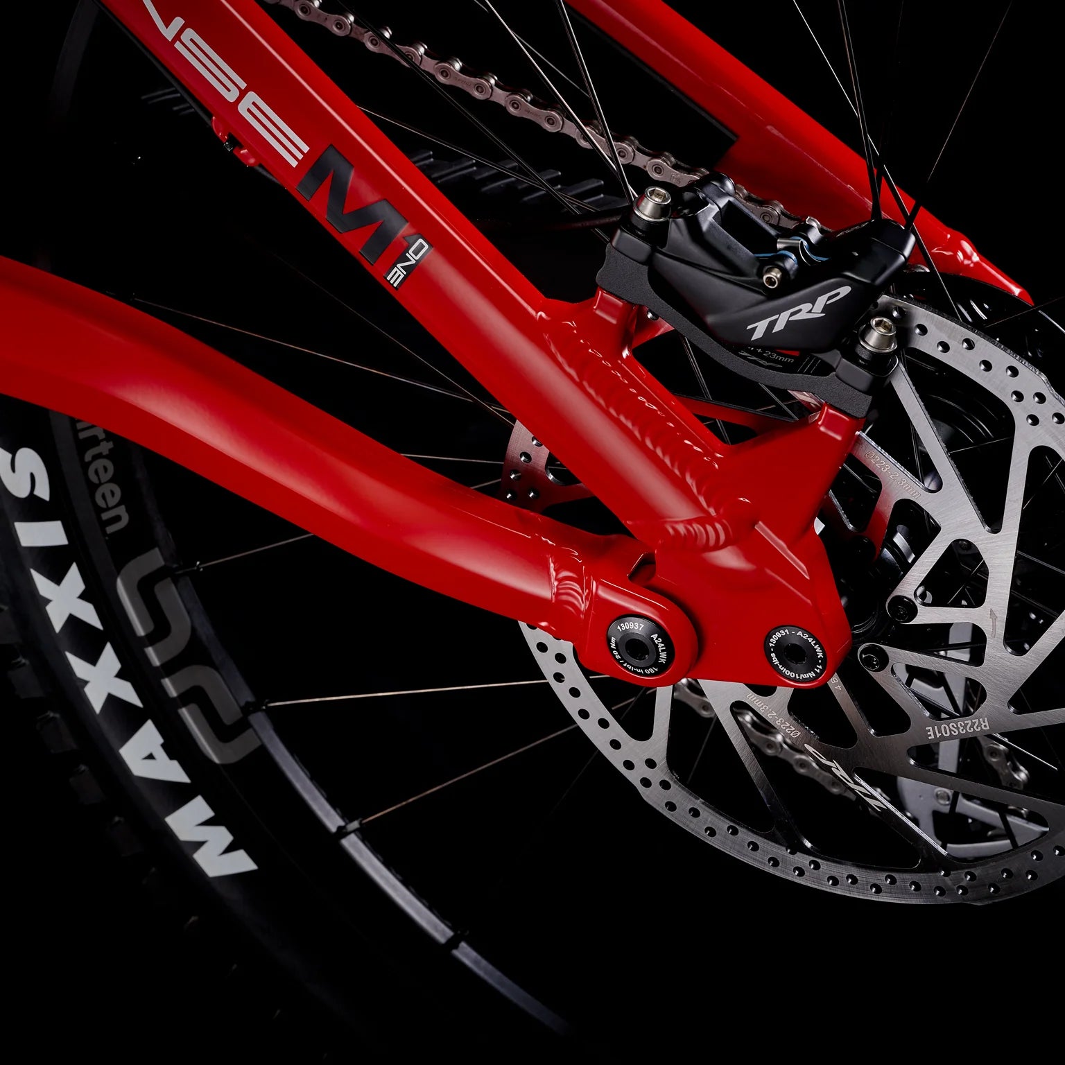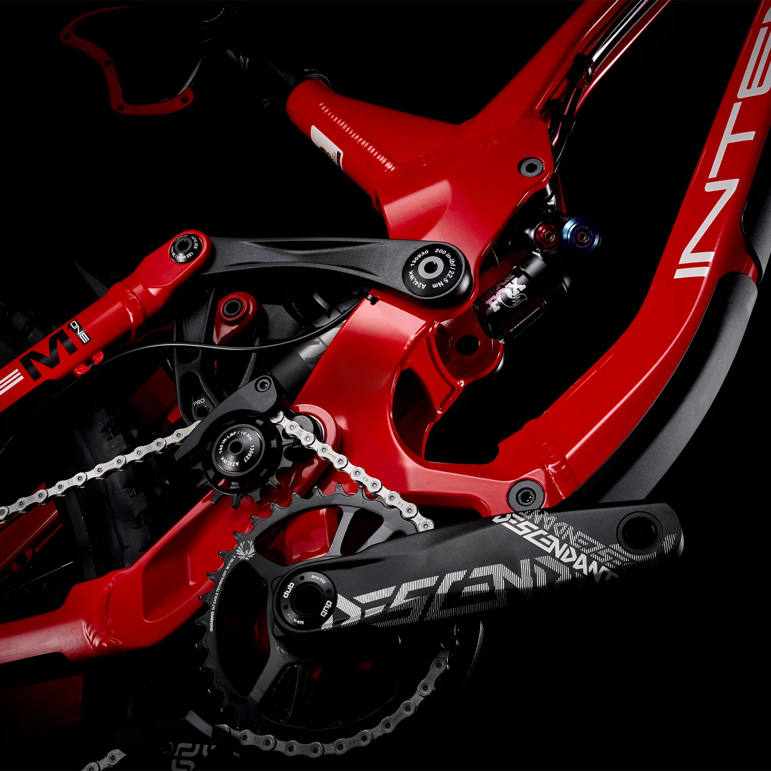 El diseño de suspensión de 6 LINKS del M1 viene con dos posiciones de montaje de amortiguador, lo que le permite elegir entre un ajuste Lineal (203mm de recorrido) o Progresivo (212mm de recorrido). La caja de dirección mide 56/56, con un ángulo de dirección de 63º, le permite utilizar un juego de dirección ajustable en un rango de 0-10mm. Estos ajustes significan que puede configurar la bicicleta para adaptarse a su estilo de conducción, preferencias personales y condiciones de la pista.