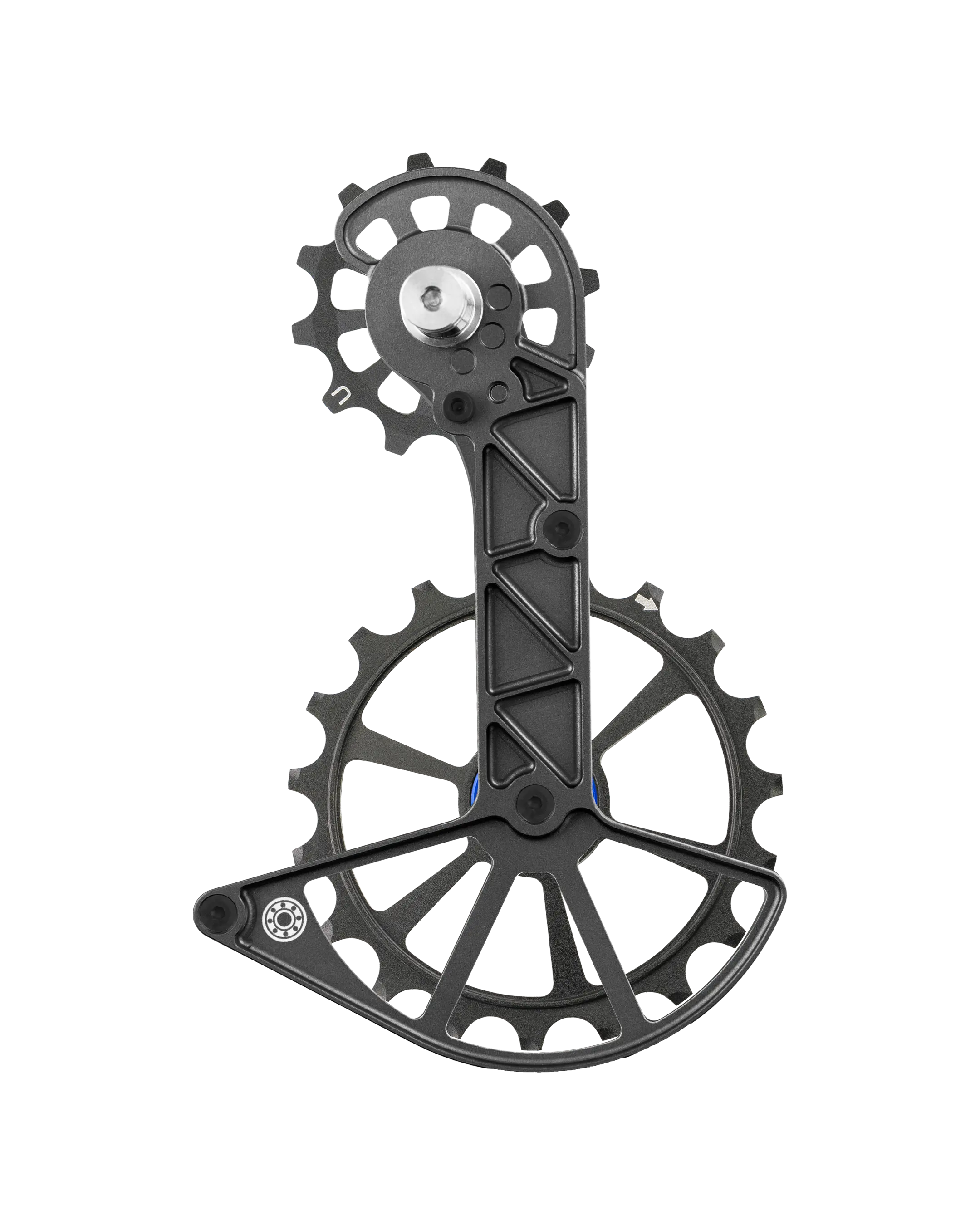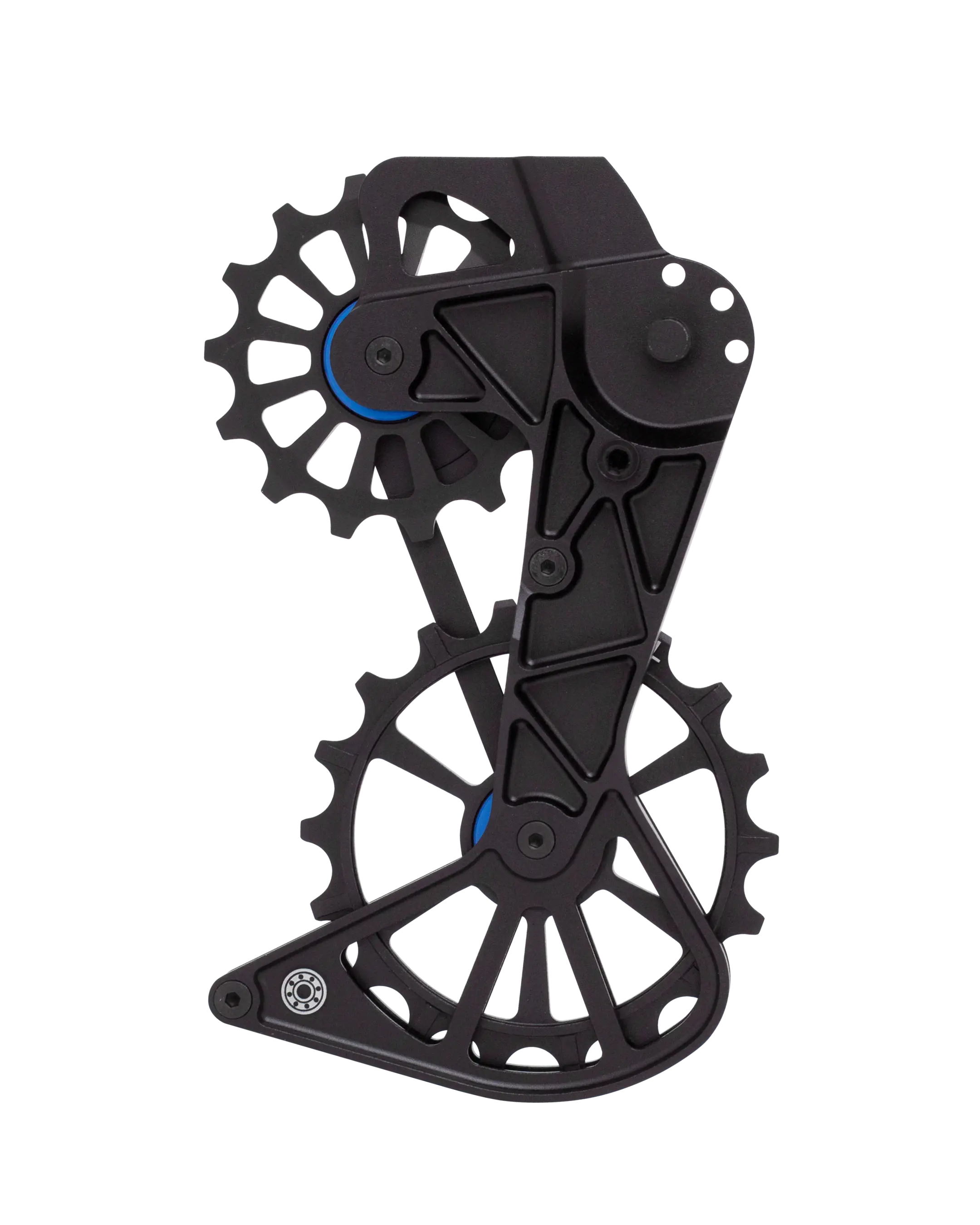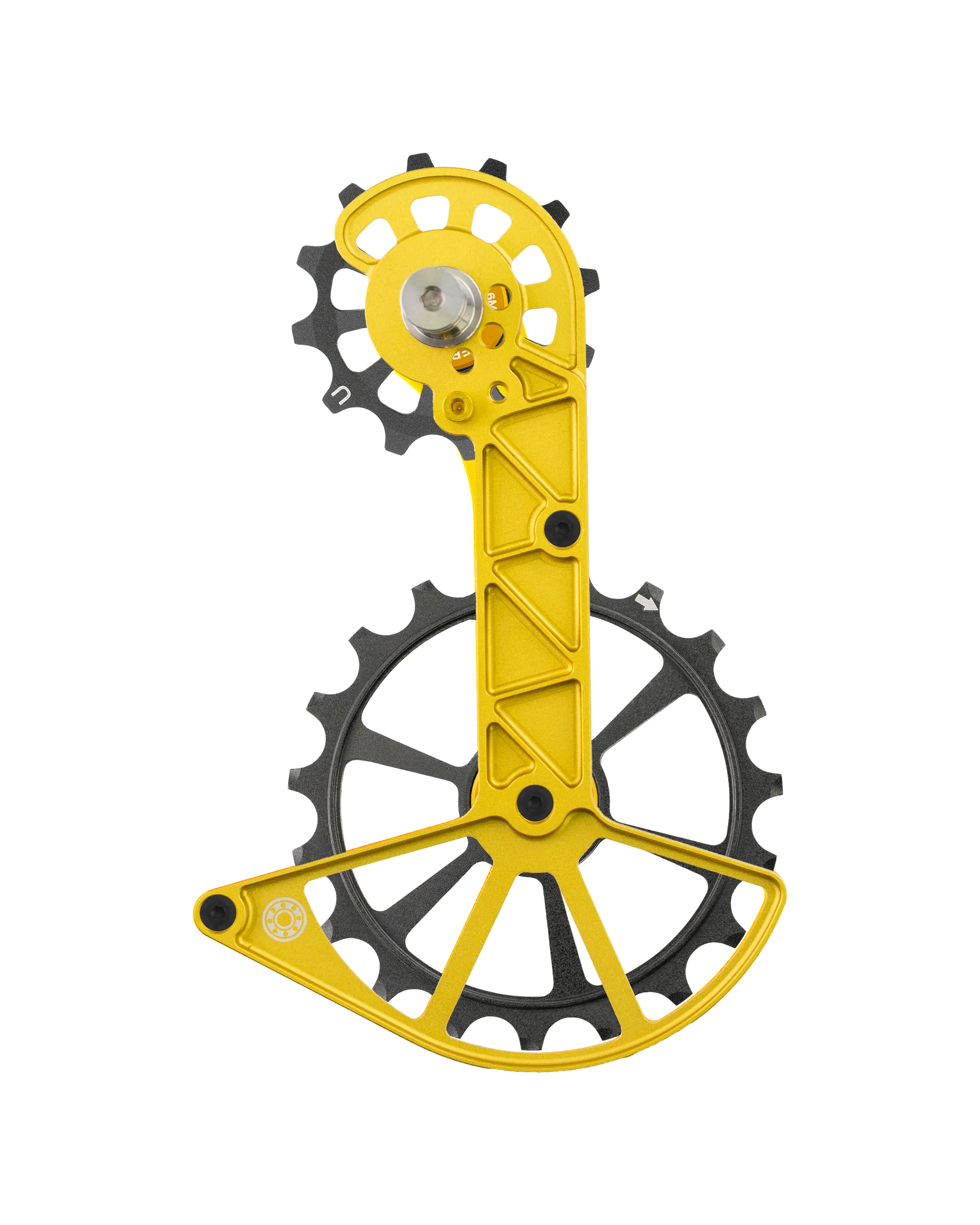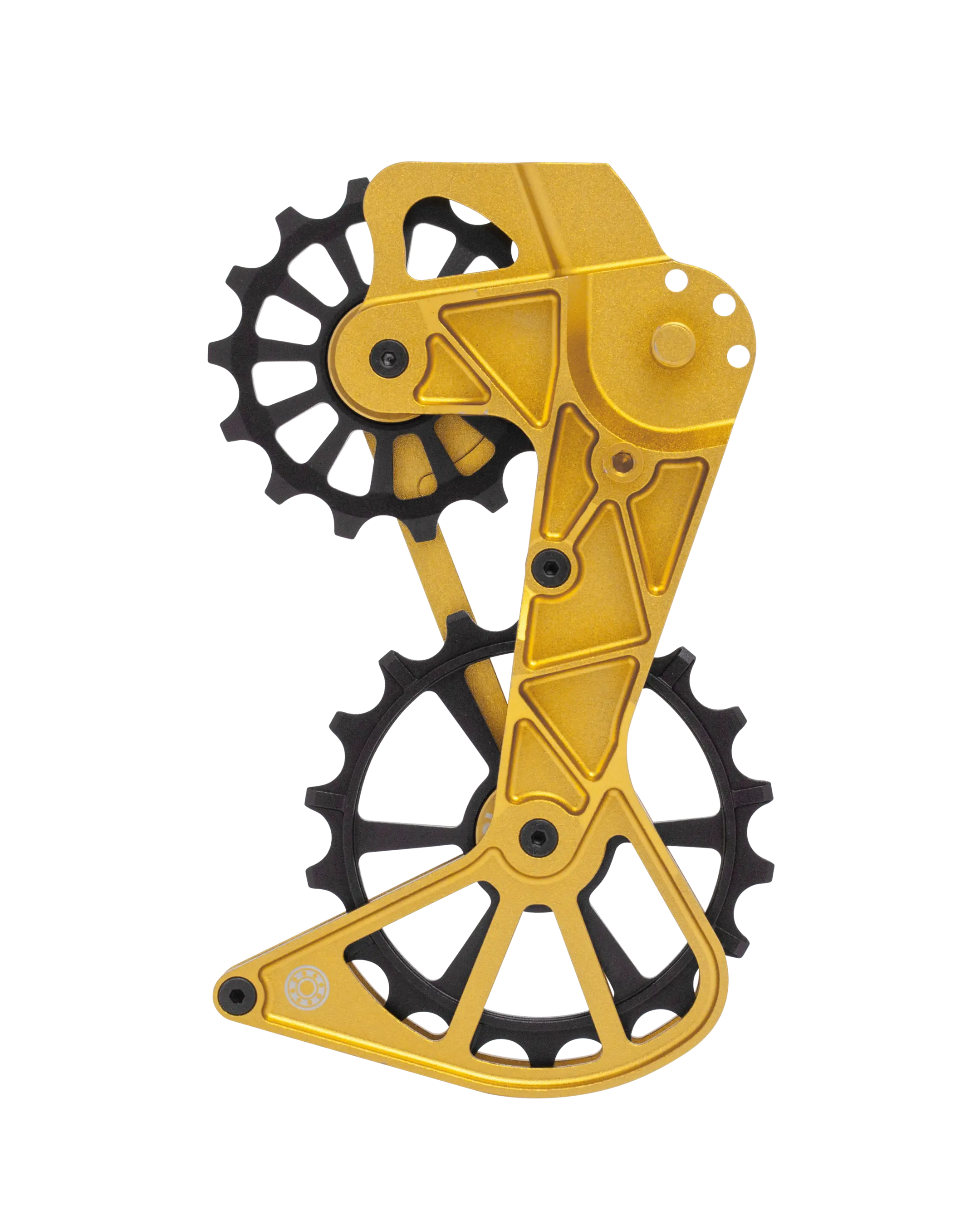 Imagina reemplazar las poleas estándar de tu desviador por una polea superior cerámica de 12 dientes y una polea inferior de 19 dientes, montadas en la jaula más rígida del mercado.