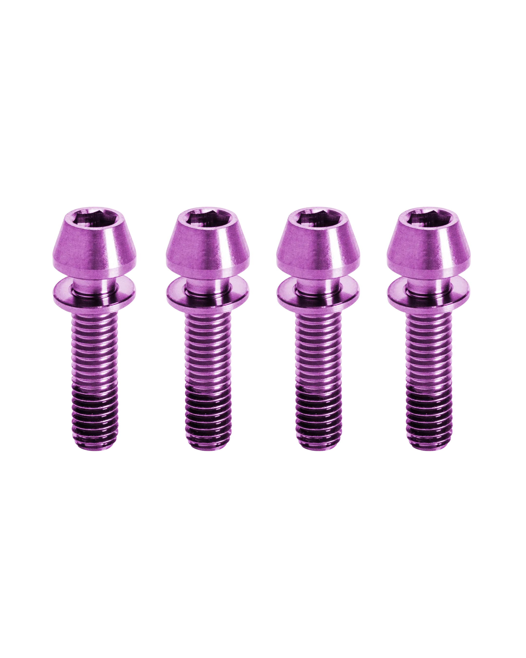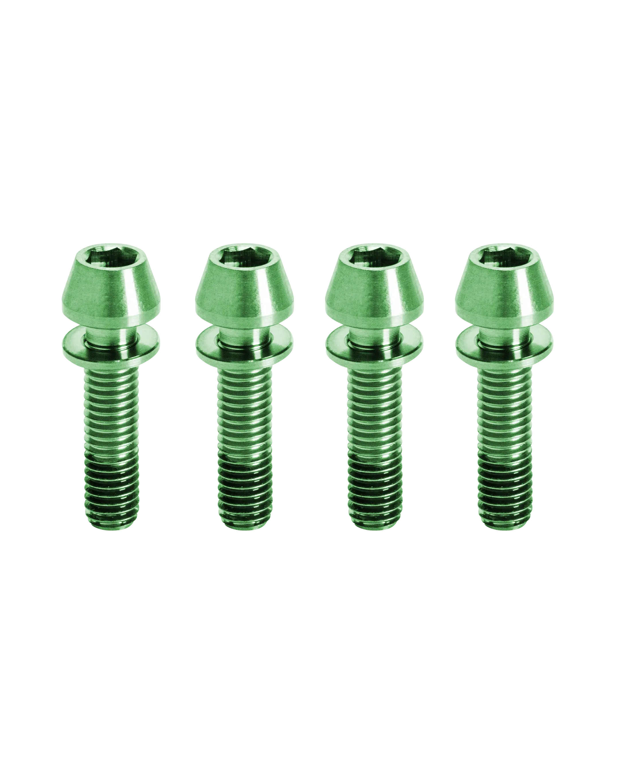Nuestros tornillos para potencias pesan menos que los de acero que vienen de serie. Además, nuestras opciones de colores anodizados te permiten hacer que tu bicicleta sea realmente única.